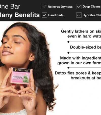 This bar is crafted for anyone dealing with tan, uneven tone or rough texture. It draws from Ayurvedic ingredients like sandalwood, neem, walnut and turmeric to brighten, soothe and smooth the skin. Alpha santalol helps replenish moisture and improve elasticity, while natural glycerin keeps your skin soft and calm. You get a rich lather, a warm earthy scent and visible radiance with regular use.