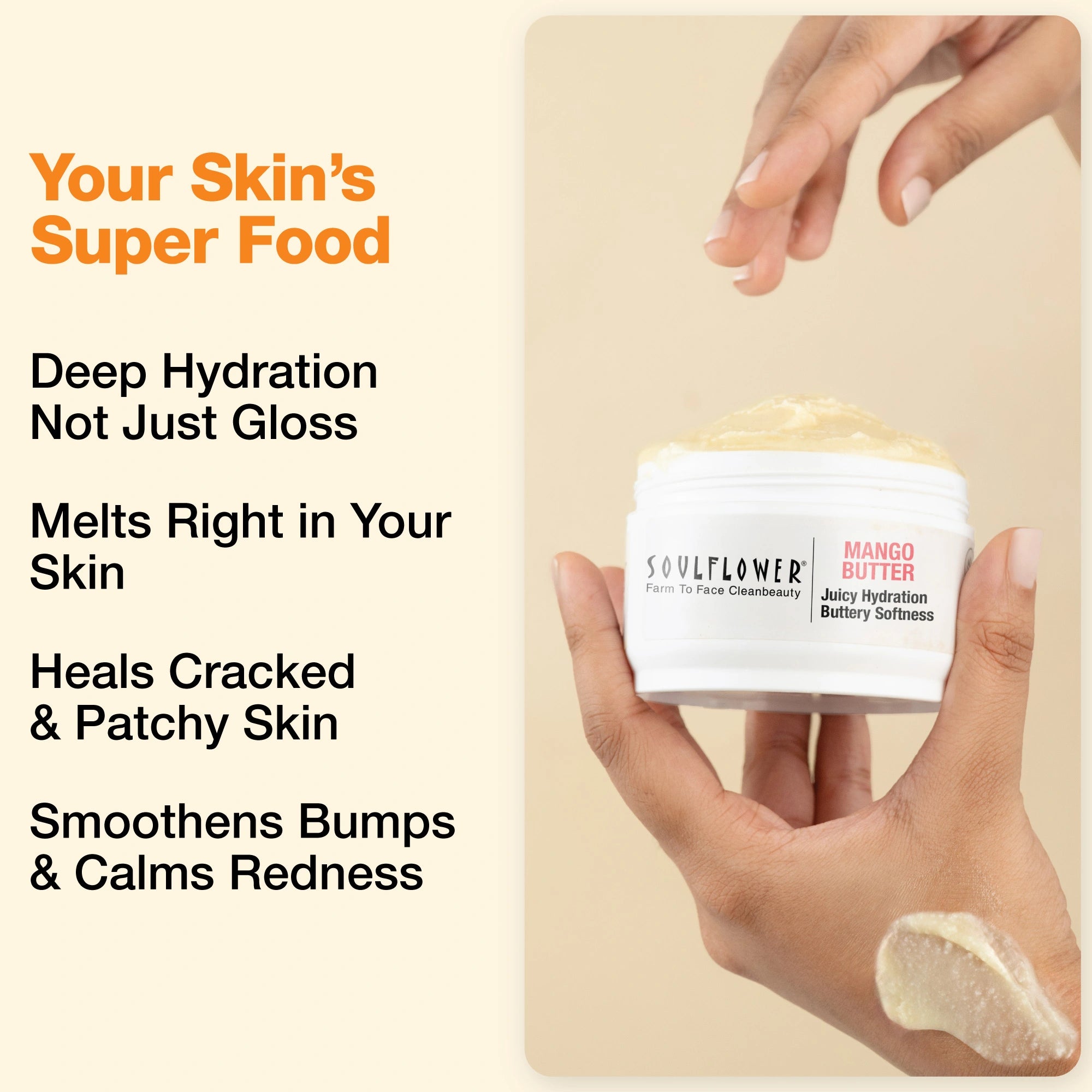 - Say goodbye to dry, irritated skin with a body butter that actually delivers. Soulflower Mango Body Butter is crafted for those who want deep, lasting nourishment without the sticky afterfeel.