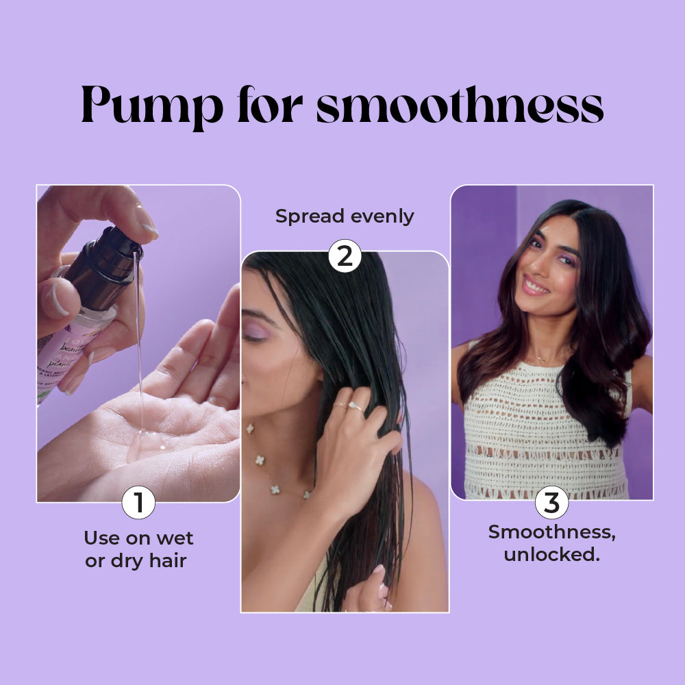 The hair serum smooths and softens the hair, improving texture by reducing frizz, making hair soft and shiny.