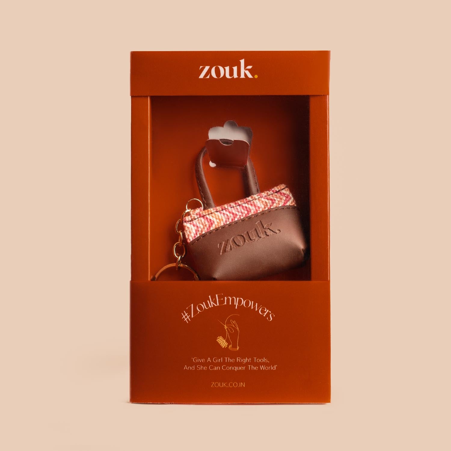 Zouk’s Powerपोटली is a meaningful and impactful keychain. Proceeds from Zouk’s #Powerपोटली sales go directly toward the Smile Foundation’s ‘She Can Fly’ initiative. In addition to supporting Girl Child Education, the Zouk Powerपोटली can be worn with purses, vehicle keys, and handbags. They are simple to hang, give your items the ideal appearance, and benefit a worthy cause. The bag charms are made of our Vegan leather and Jute khadi fabric and comes along with a easy to attach key ring