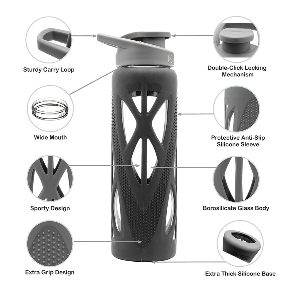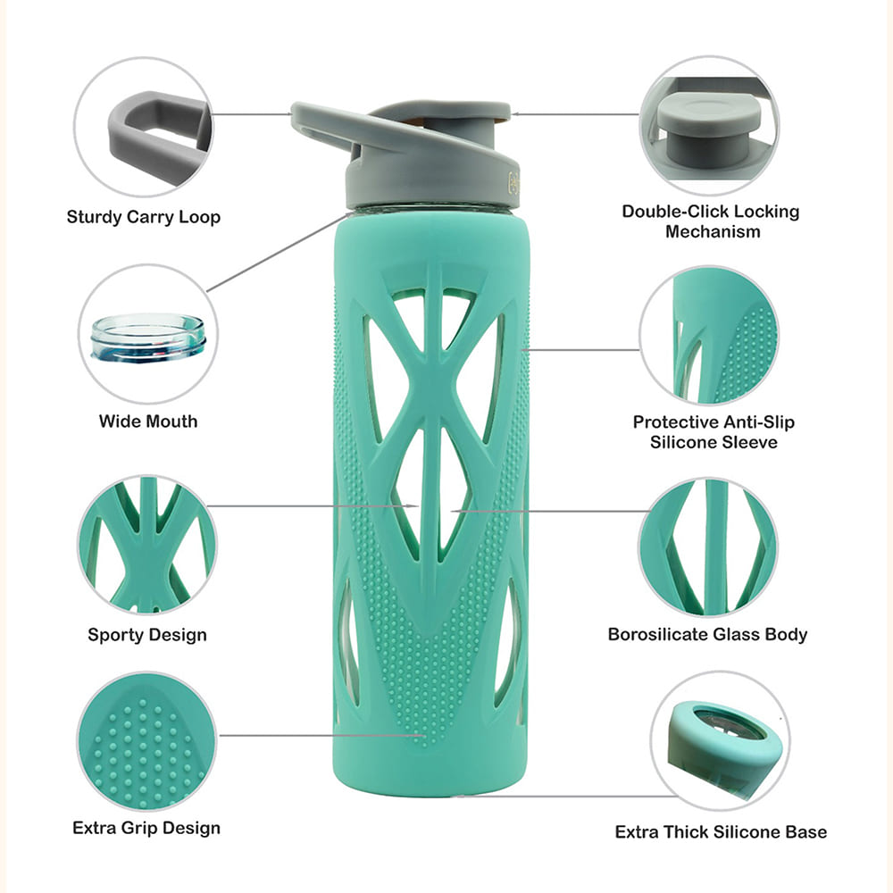 EXPERIENCE CONVENIENCE IN STYLE : The sporty, colourful silicone sleeve with double click flip cap lid and an easy carry loop is totally leak proof making it a cooler alternative to any other bottle.