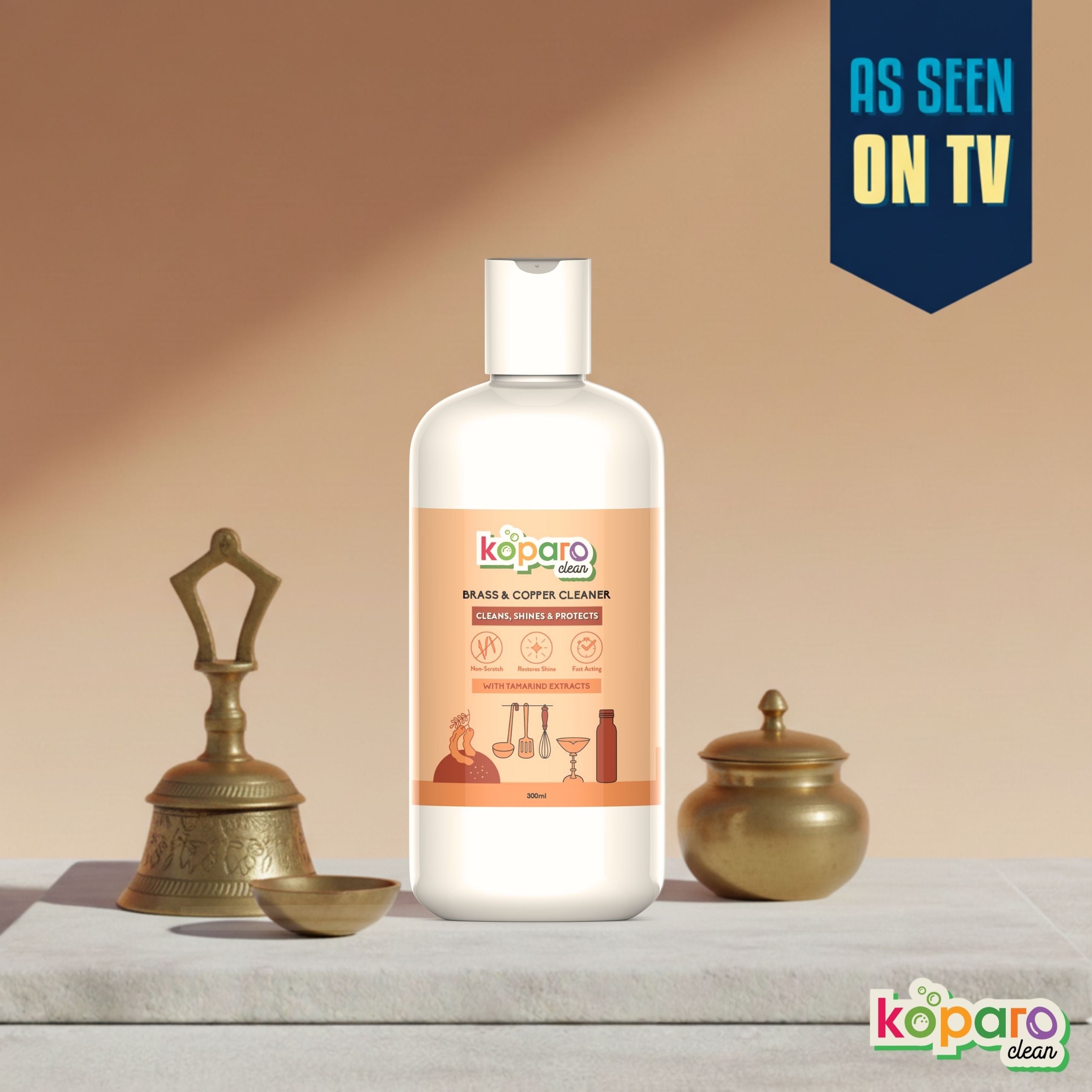 Koparo’s Brass Polish & Shiner removes tough build-up while restoring your metal’s natural shine. Koparo’s Brass Polish & Shiner removes tough build-up while restoring your metal’s natural shine. Made with an ammonia-free, non-scratch formula, it’s safe for regular use. Ideal for pooja thalis, diyas, utensils, and more brass surfaces.