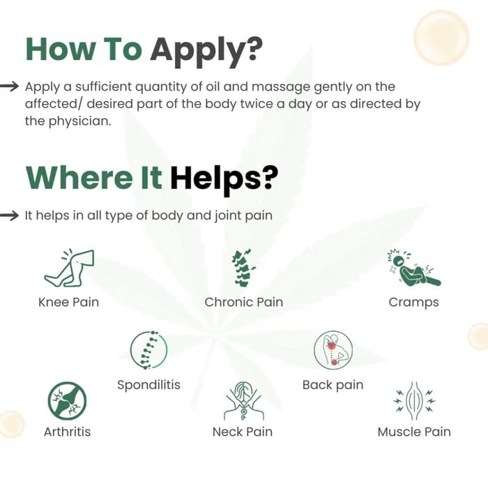 Cannarma Joint Pain Relief Oil (150 ml) is a natural Ayurvedic oil formulated to provide fast relief from joint pain, stiffness, and inflammation. Enriched with hemp seed oil, flax oil, cinnamon oil, ajwain oil, lemongrass oil, coconut oil, peppermint oil, and beeswax, it soothes joints, promotes mobility, and absorbs quickly without leaving a greasy residue.