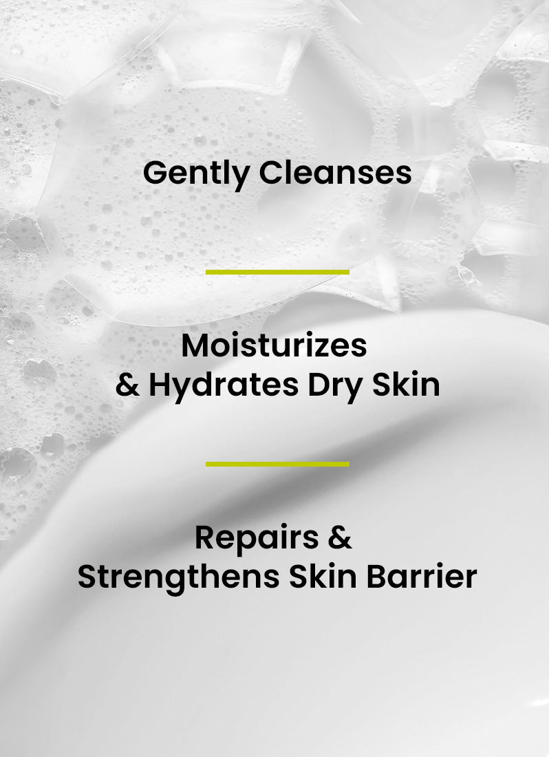 This combo blends naturally hydrating ingredients like Colloidal Oatmeal, Tamanu Extracts, Chia Seed Oil, and Aloe Vera with actives like Ceramides, Peptides, and Polyglutamic Acid. To offer mild cleansing and deep moisturization for dry skin, without compromising the skin’s barrier.