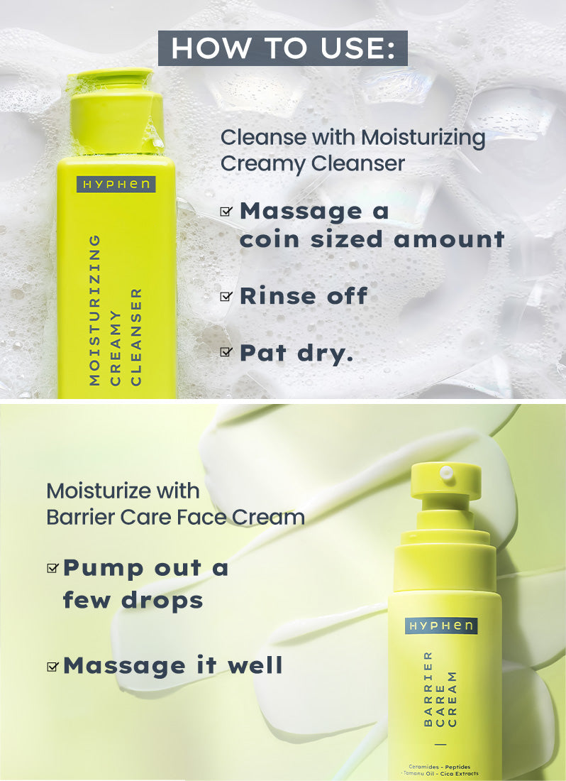 The Moisturizing Creamy Cleanser mildly cleanses the skin, removing dirt, grime and makeup without stripping off the natural moisture of the skin or dehydrating the skin. The cleanser also maintains the optimum pH level of the skin. The Barrier Care Face Cream – strengthens skin barrier and heals dry skin, guarding it from dust, dirt, pollution and sun’s harmful rays.