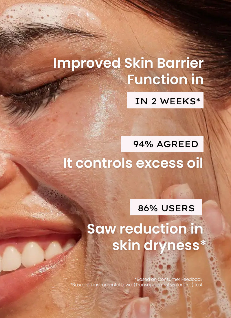 This combo is a blend of naturally cleansing and hydrating ingredients like Prebiotic Sugar, Oatmeal Extracts, Chamomile Extracts, and Aloe Vera Extracts with actives such as AHA-BHA, Ceramides, Peptides, and Squalene. It offers deep cleaning and unclogging for oily to combination skin while repairing, hydrating & protecting skin barrier.
