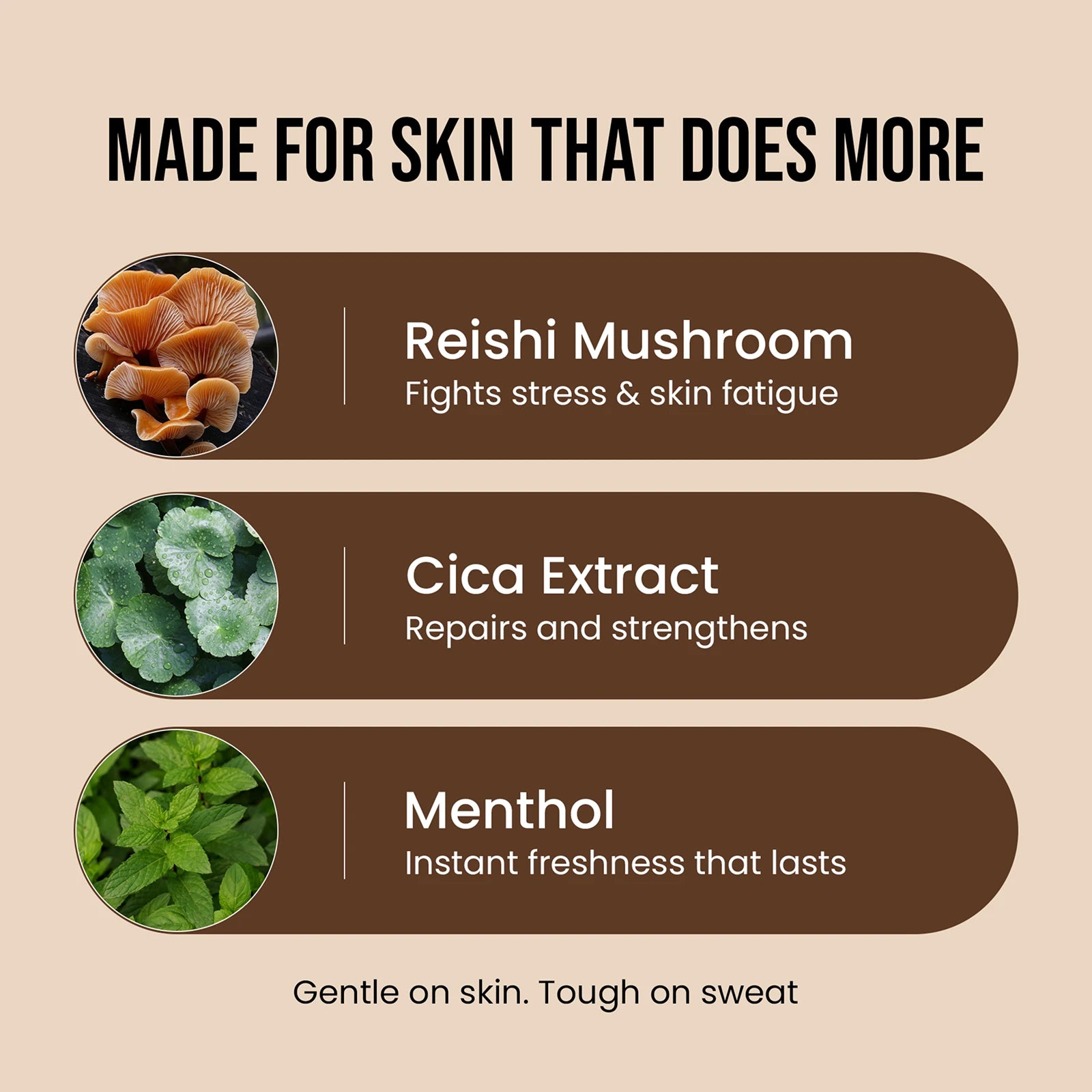 Water, Cica Extract, Reishi Mushroom Extract, Mint Extract, Green Tea Extract, Cocamidopropyl Betaine, Cocoglucoside, Decylglucoside, Caprylyl / Capryl Glucoside, Coconut Esters, PEG 150 Distearate, Phenoxyethanol, Ethylhexylglycerin, Glycerin, PEG 140 Hydrogenated Castor Oil, Fragrance, Pine Oil, Menthol, Disodium EDTA