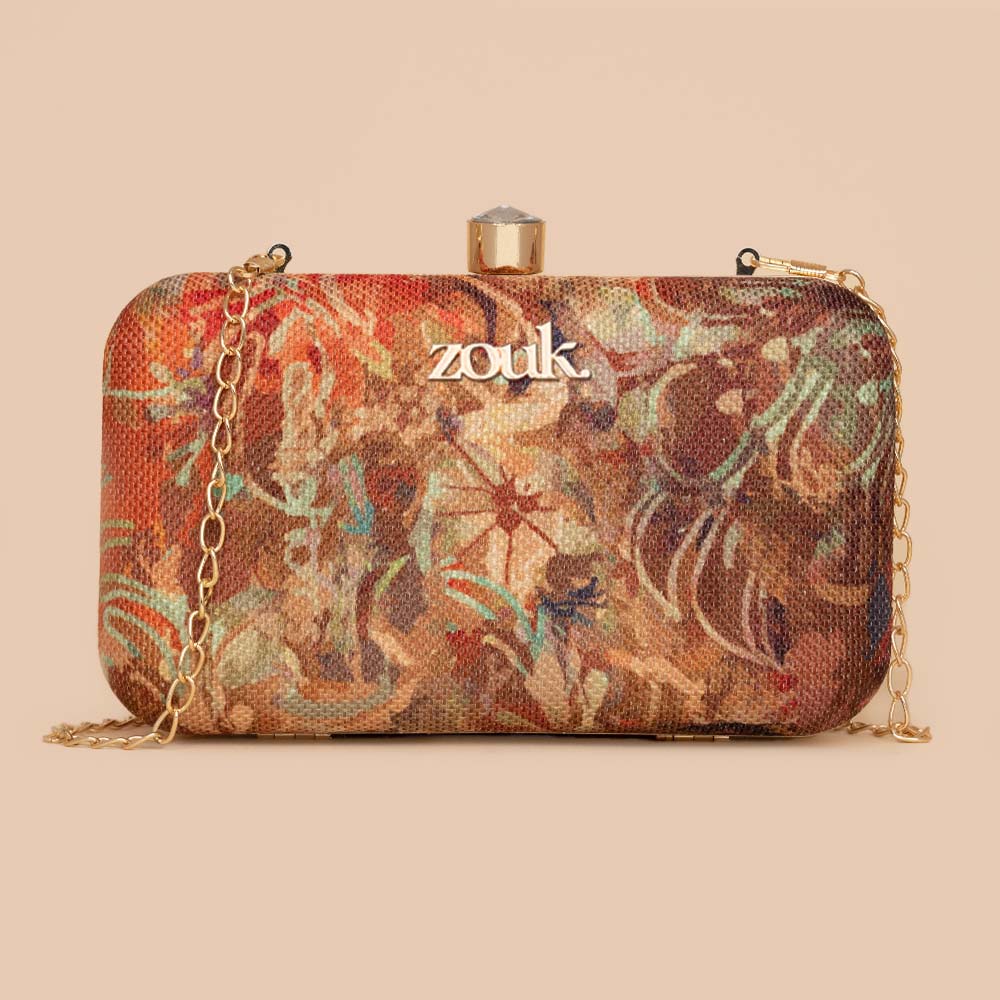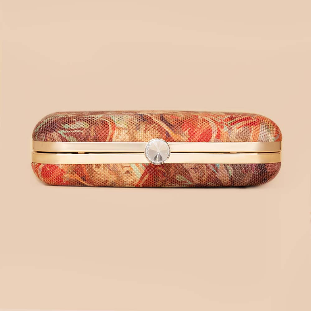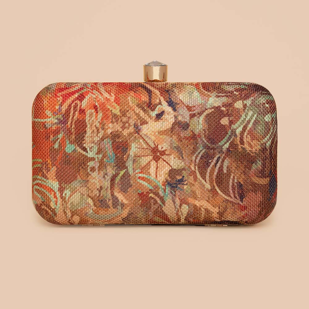 This is a Proudly Indian and 100% PETA approved Vegan Clutch. Crafted in our most elegant prints on jute Khadi Fabric, this clutch is a must have in your closet to elevate your festive ethnic wear or evening wear.