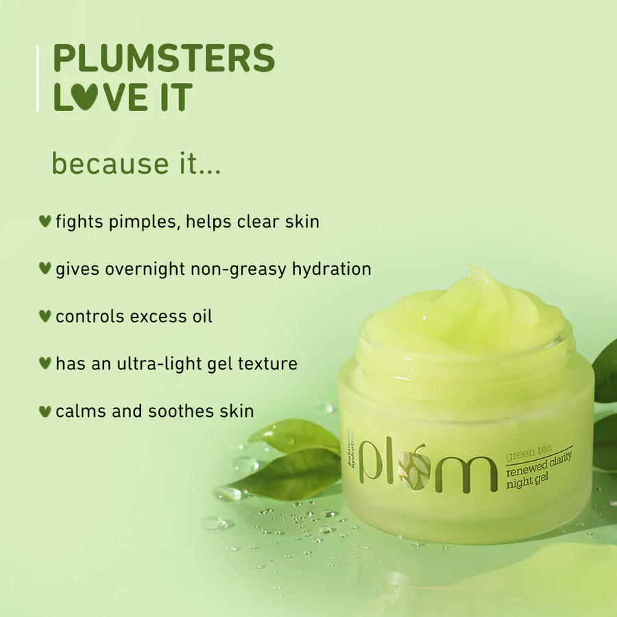 For those seeking a lightweight, non-greasy night gel that hydrates and clarifies oily or acne-prone skin, the Plum Green Tea Renewed Clarity Night Gel is an excellent choice.