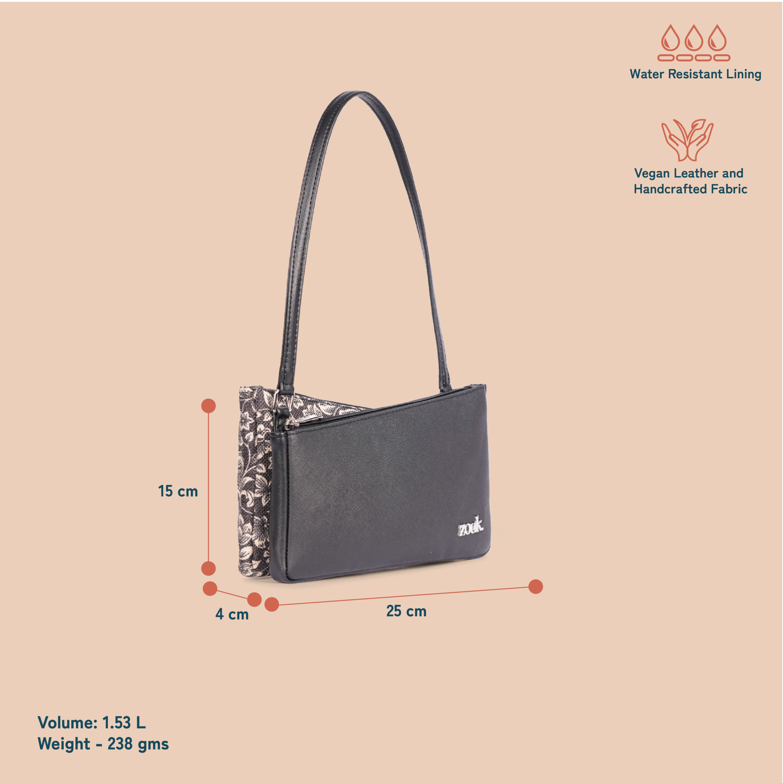 • External Material: Vegan Leather and Handicraft Fabric