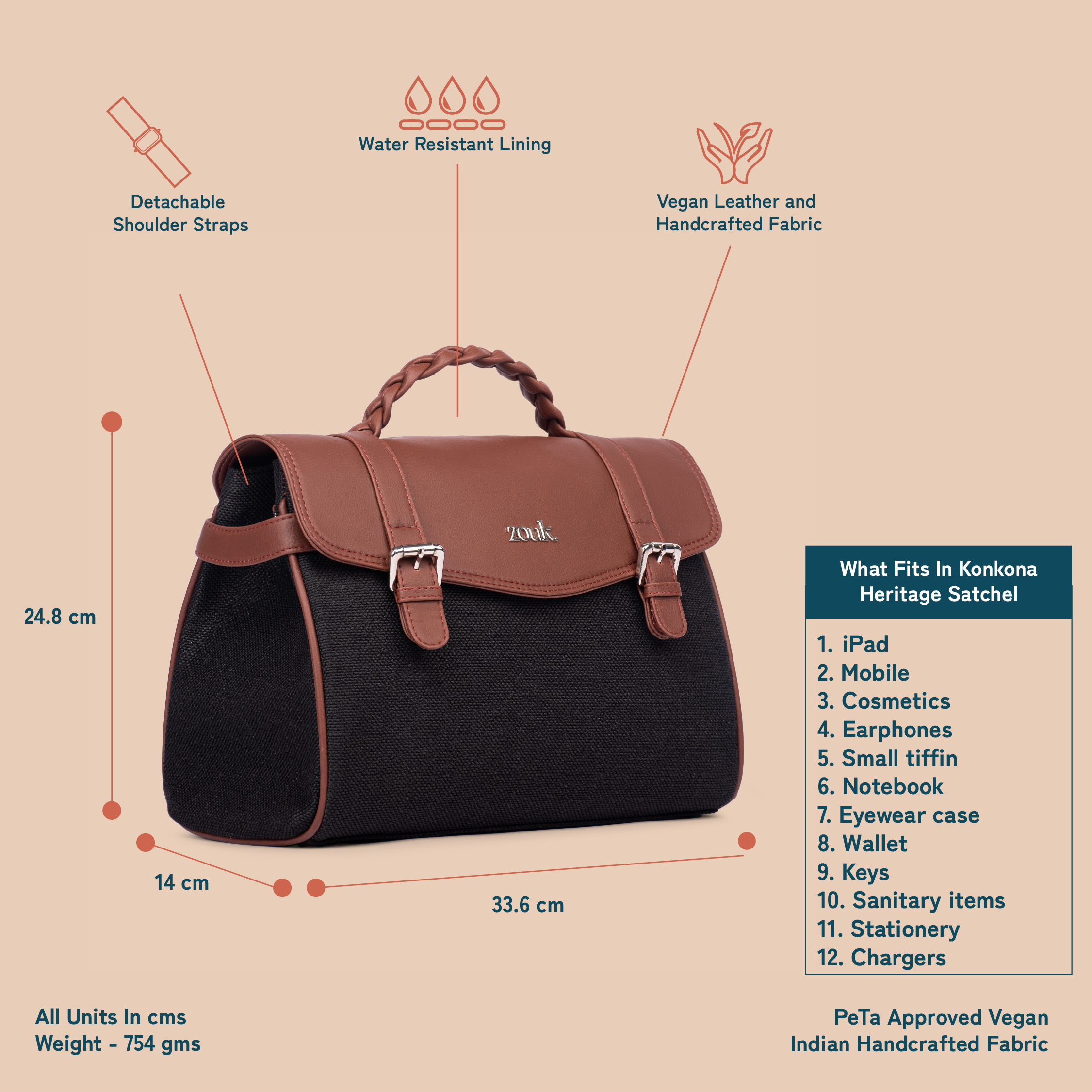 • External Material – Vegan Leather and Handicraft Fabric