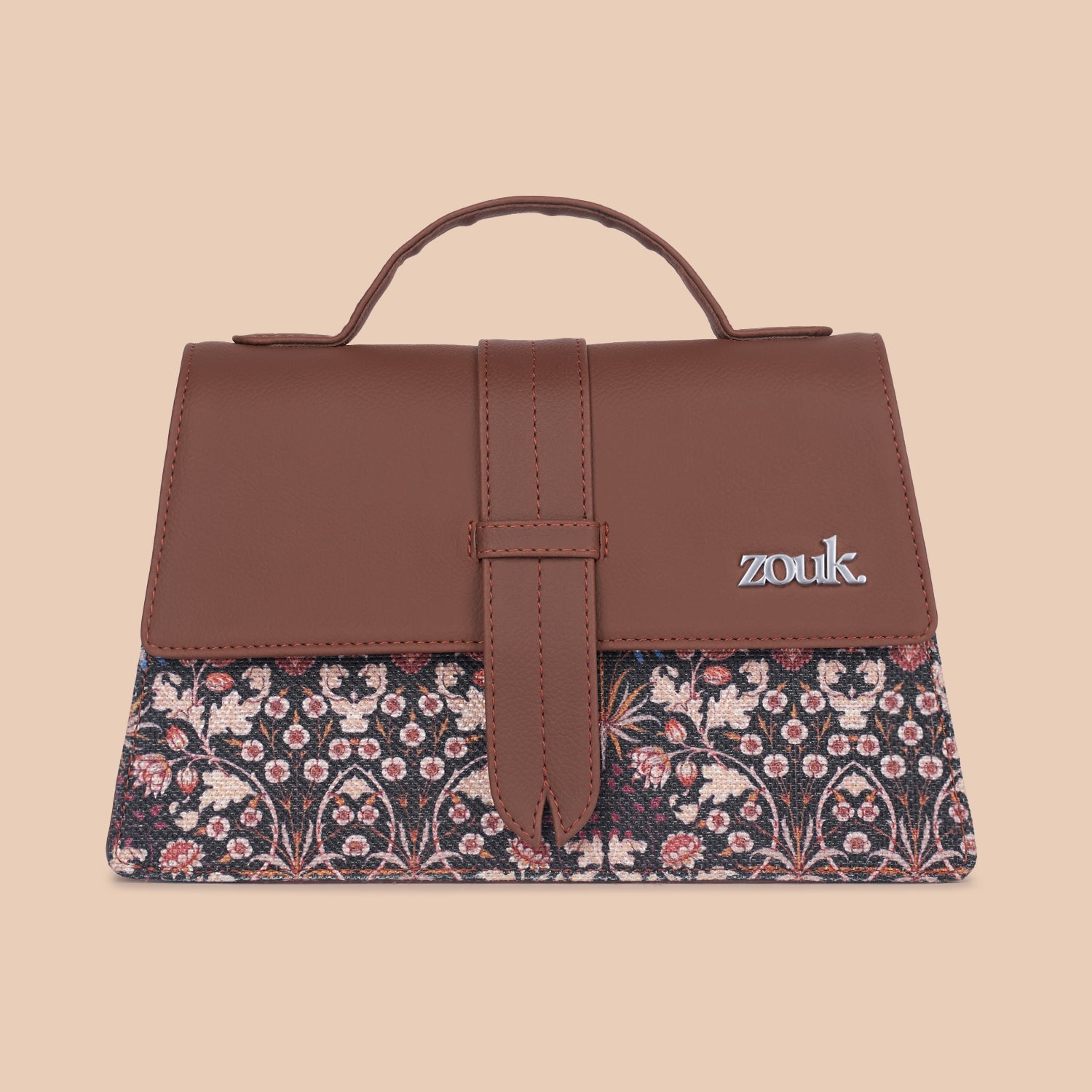 This Proudly Indian, 100% PeTA-approved satchel merges contemporary style with functionality. Meticulously crafted, it features a tapered silhouette enhanced by a chic flap detail that adds a gist of elegance. The classic top handle offers a timeless appeal. Created with an eye for both fashion and utility, its streamlined design subtly elevates your daily ensemble.