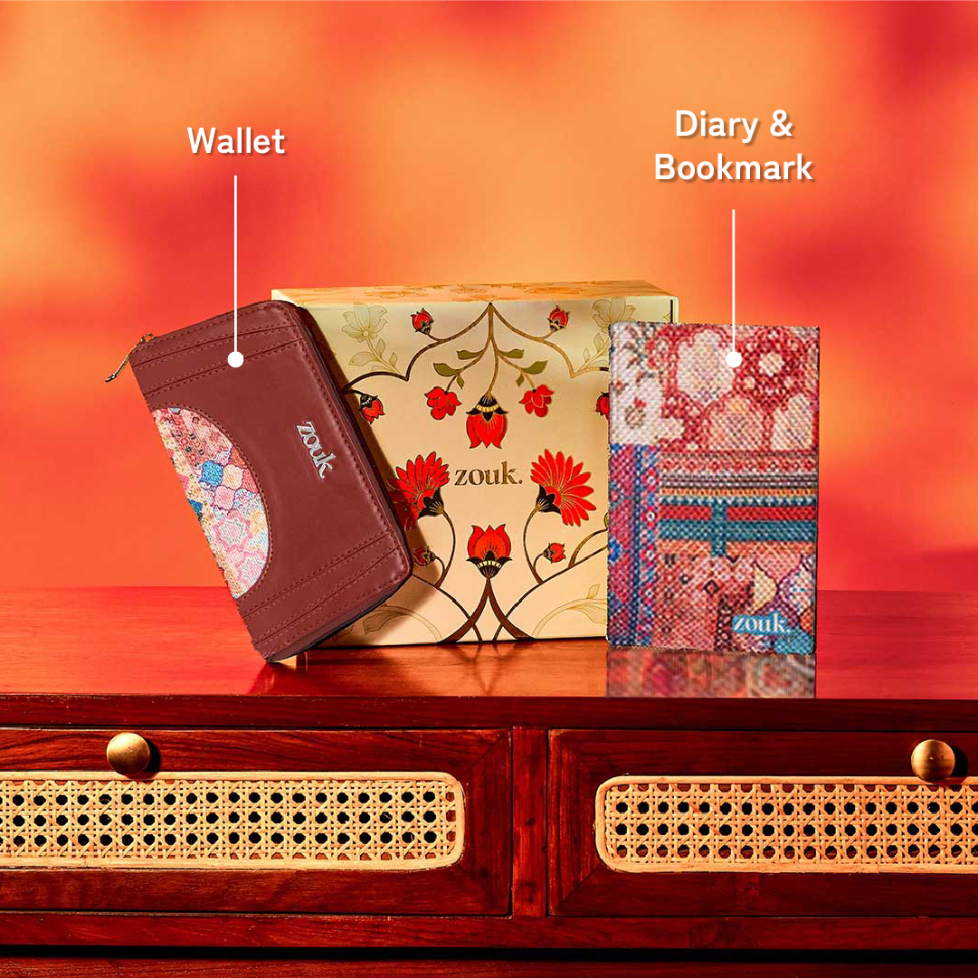 Get the celebration started with our Nawabi Signature Tapestry Gift Box; an ode to culture, craft and tradition. This charming gift set, featuring a rendition of our Nawabi Couture print, draws inspiration from Bihar’s traditional Madhubani paintings. The elegant packaging of the set makes it an ideal gift choice for every occasion.