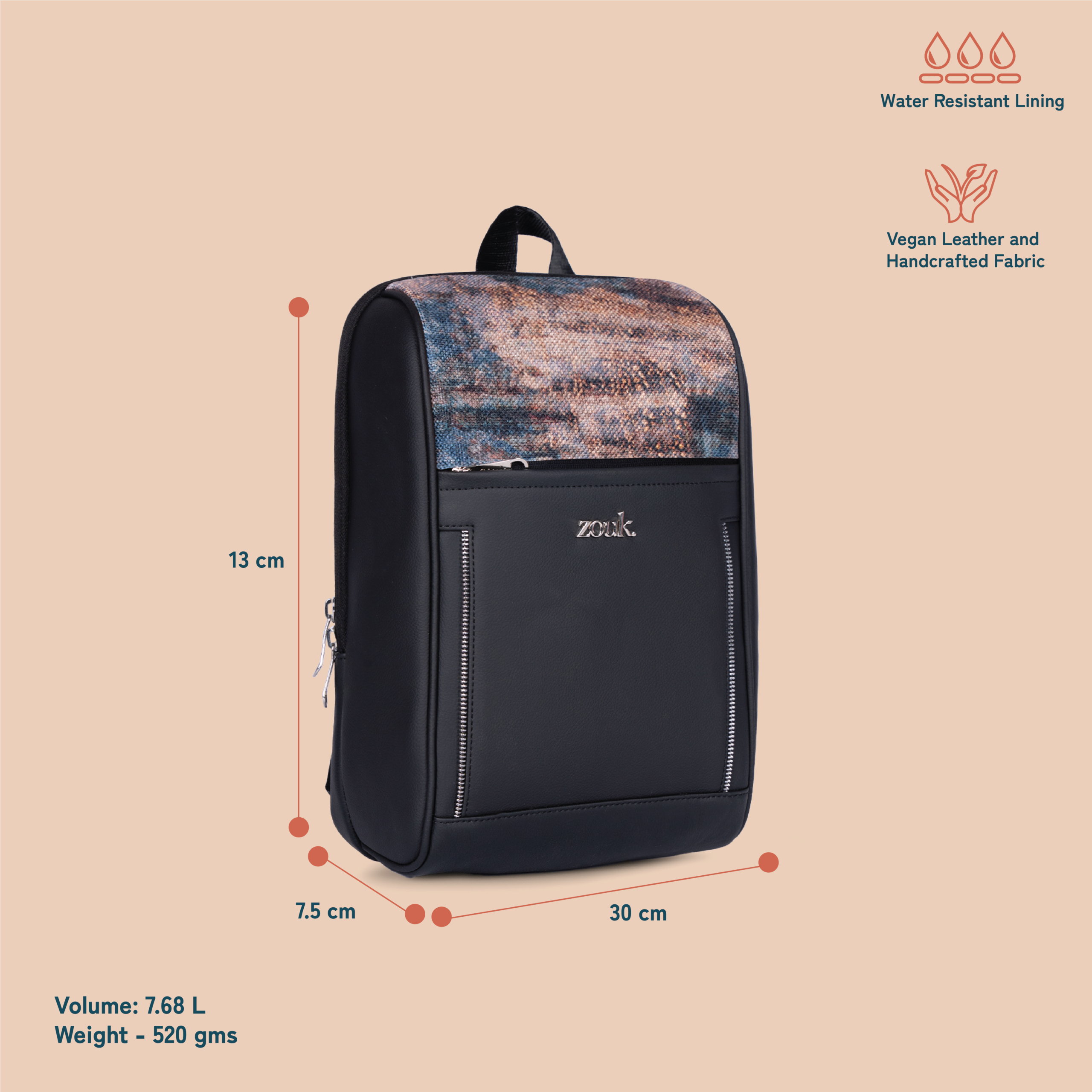 • External Material: Vegan Leather and Handicraft Fabric