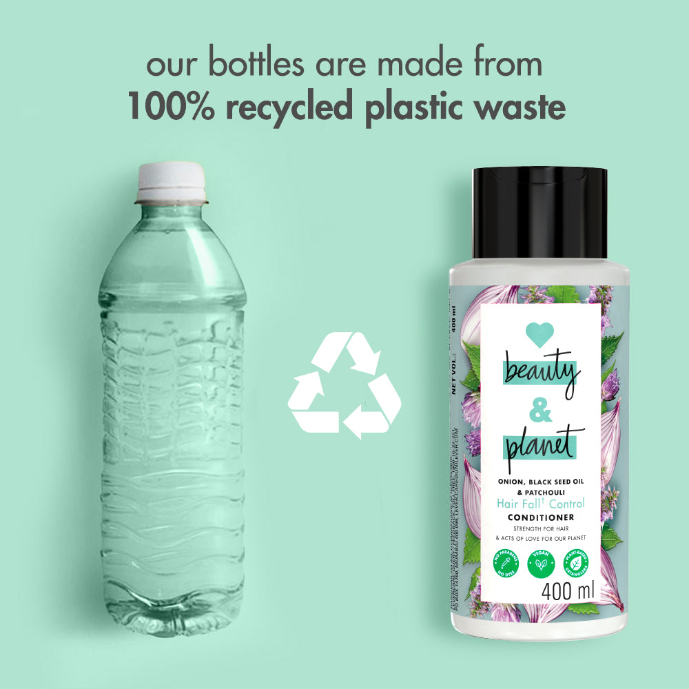 Experience 75% less hair fall* & detangled, soft hair with Love Beauty And Planet’s Onion, Blackseed & Patchouli hair fall control conditioner, infused with organic onion and blackseed oil, that helps detangle & strengthen hair for healthy-looking tresses. Get the ultimate sensorial experience & enjoy the fresh uplifting scent of ethically sourced patchouli.Our vegan formula is cruelty-free, has no parabens, dyes, and sulfates and is packaged in 100% recycled plastic.