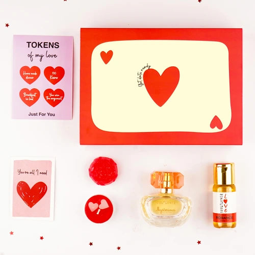 Full Ingredients: Rose T-Light Candle, Romance Massage Oil, Mysterious Eau De Parfum, Handmade Rose Soap