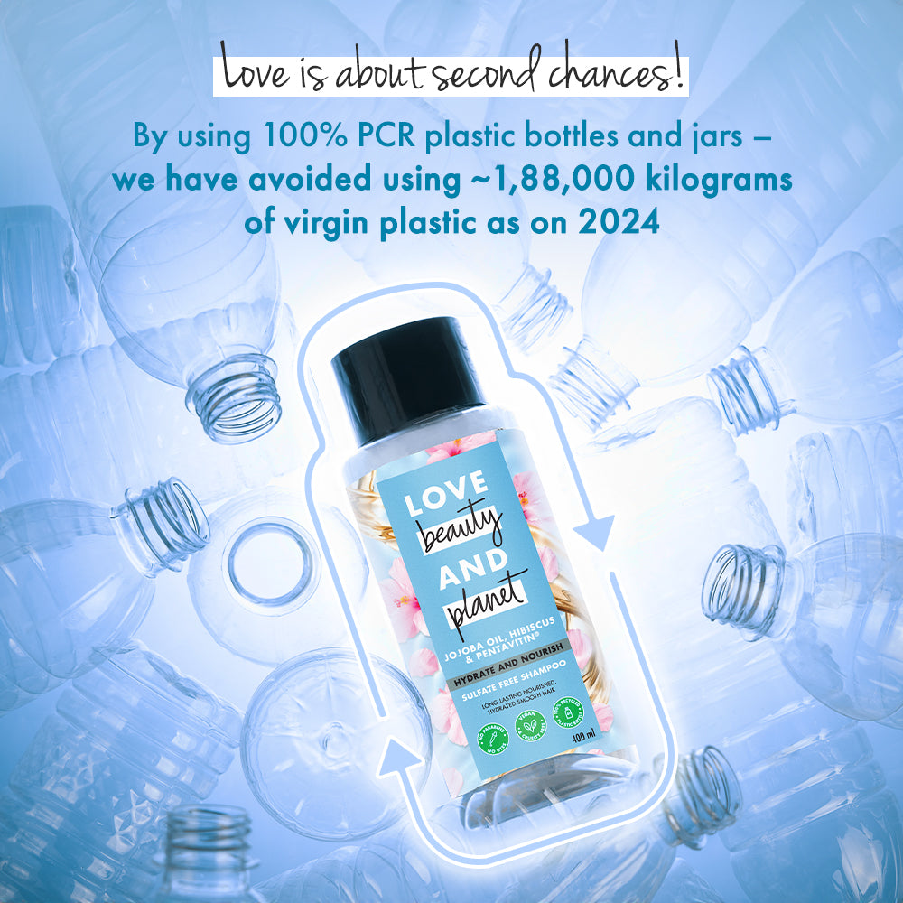 We like to extend our love for the planet and your hair by eliminating nasties like added sulfates, parabens, dyes & mineral oil from our conditioning treatments. This means no guilt for you, either! We have also avoided using 120,000 kilograms virgin plastic as on 2023 by using 100% PCR bottles and jars.