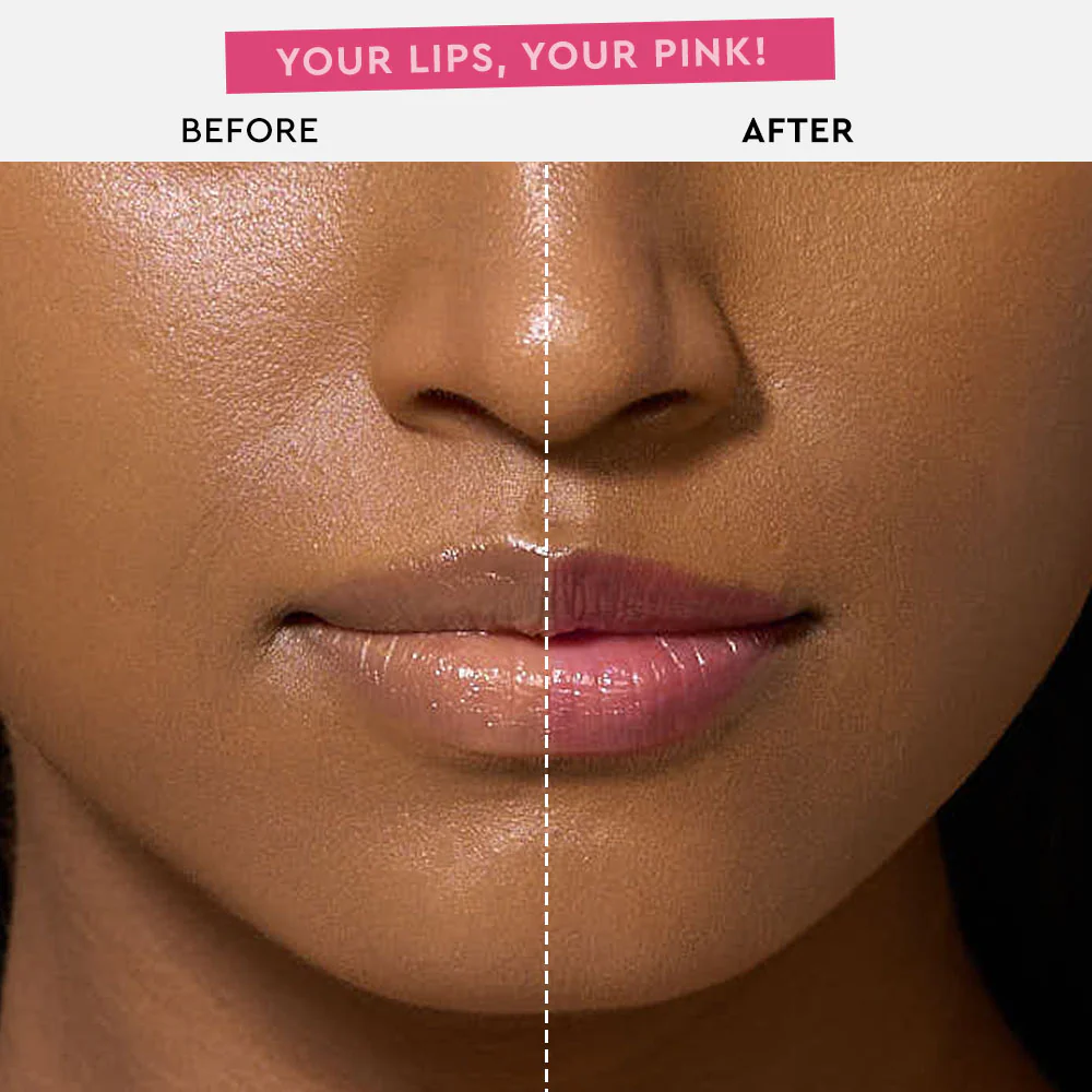 Simply swipe it directly onto your bare lips. It will start clear and adapt to your pH, revealing a natural pink tint.