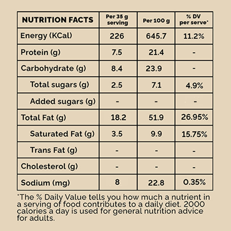 Cashew butter is smooth and creamy, with a subtle nutty flavour and a touch of sweetness.
