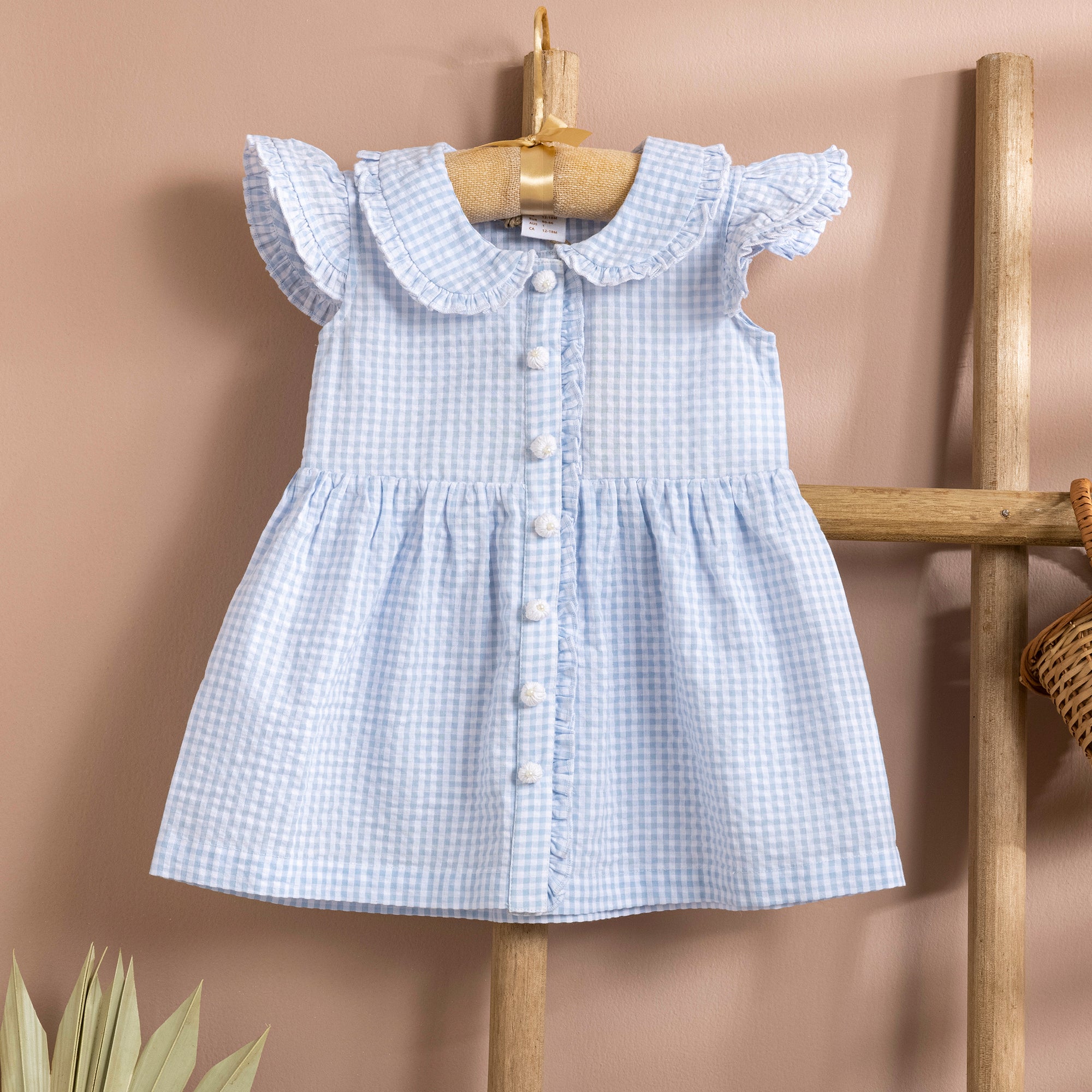 The Poshaak Checkered Frilled Baby Girl Dress is a stylish and adorable outfit perfect for your little girl. This dress features a Peter Pan collar with frill detailing, which adds a touch of elegance. Additionally, the dress is adorned with handmade crochet buttons, adding a unique touch. Made from high-quality yarn dye checkered fabric, this dress is both comfortable and durable. With its timeless design and intricate details, this dress will make your little one stand out on any occasion