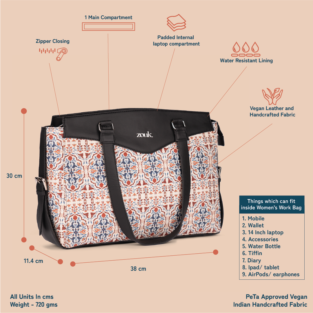 This is a Proudly Indian and 100% PeTA approved Women’s Work Bag, It is the perfect blend of style, functionality, and modernism. Crafted with love and care, it combines the beauty of our jute khadi fabric with the durability of vegan leather.