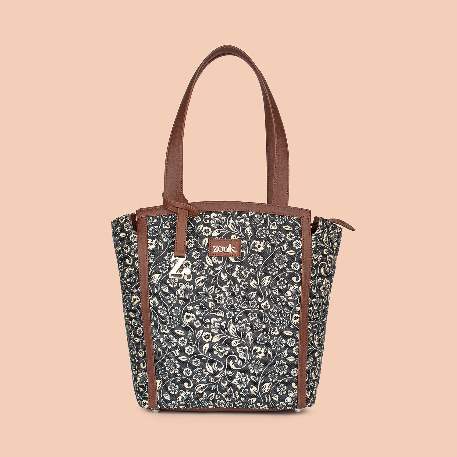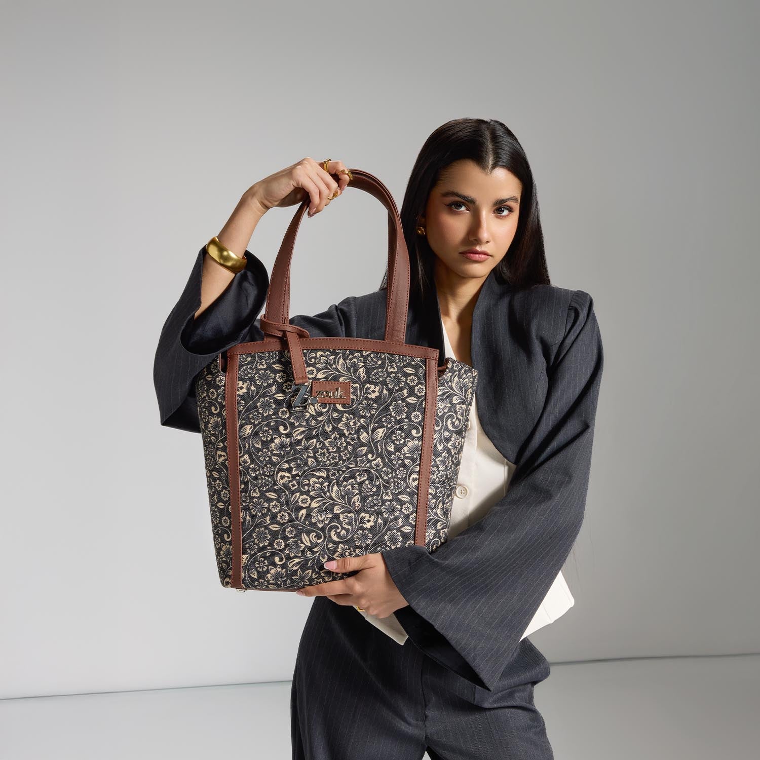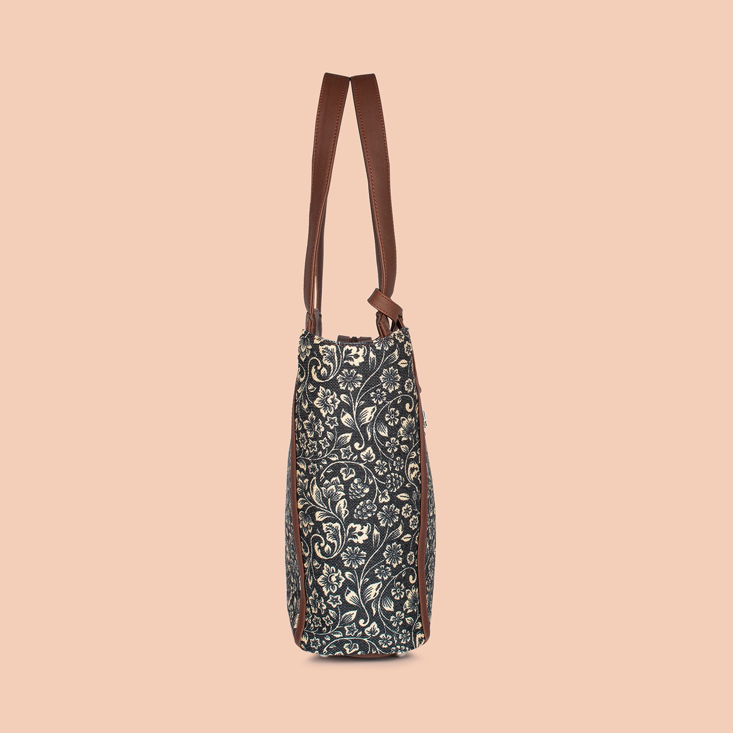 The Adira Tote Bag is designed for those who need a perfect balance of sophistication and practicality. It’s a 100% PETA-approved and proudly Indian tote bag that features contrasting vegan leather strips on fabric, a distinctive cutout detail, and the signature Z-dot charm.