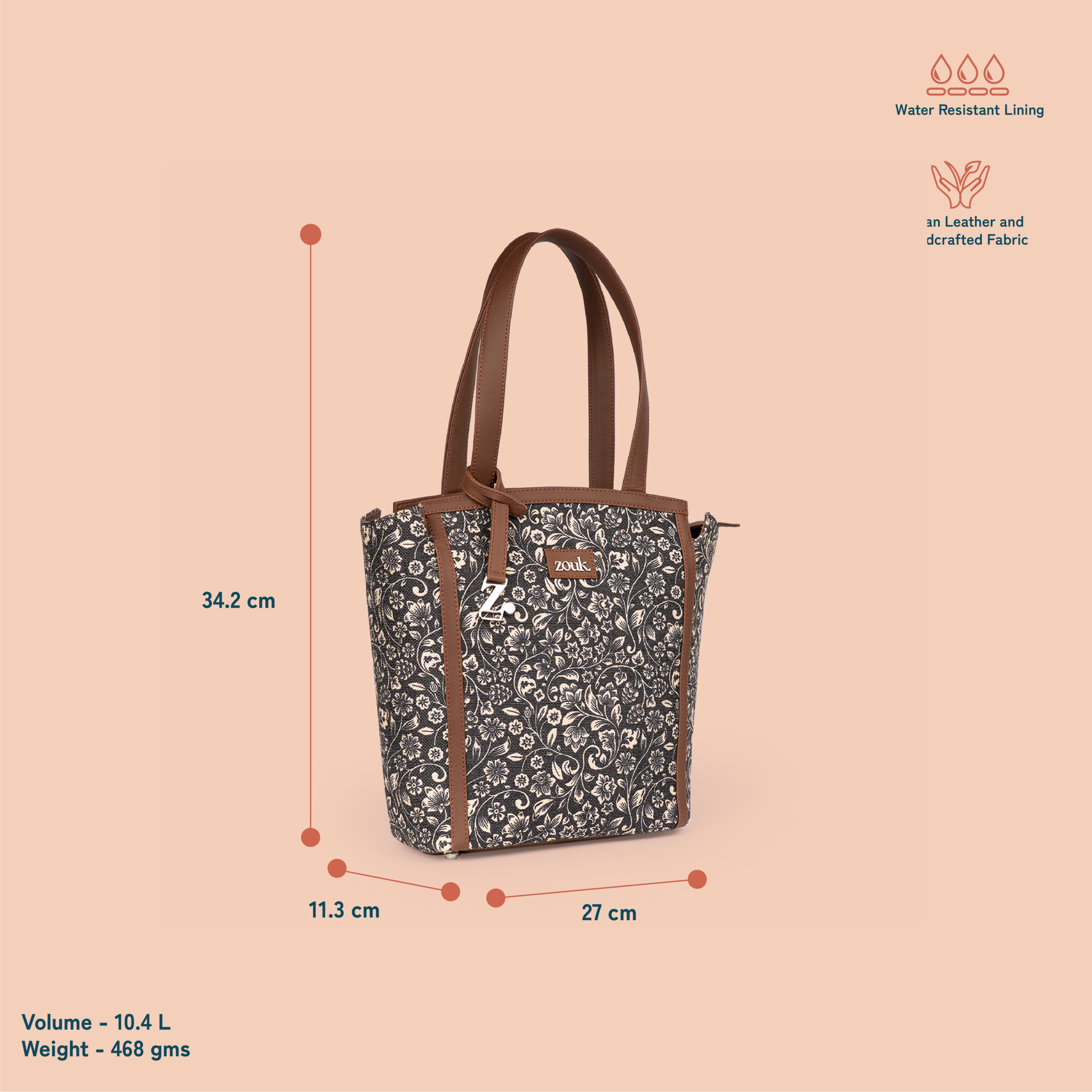 • External Material: Vegan leather and handicraft fabric