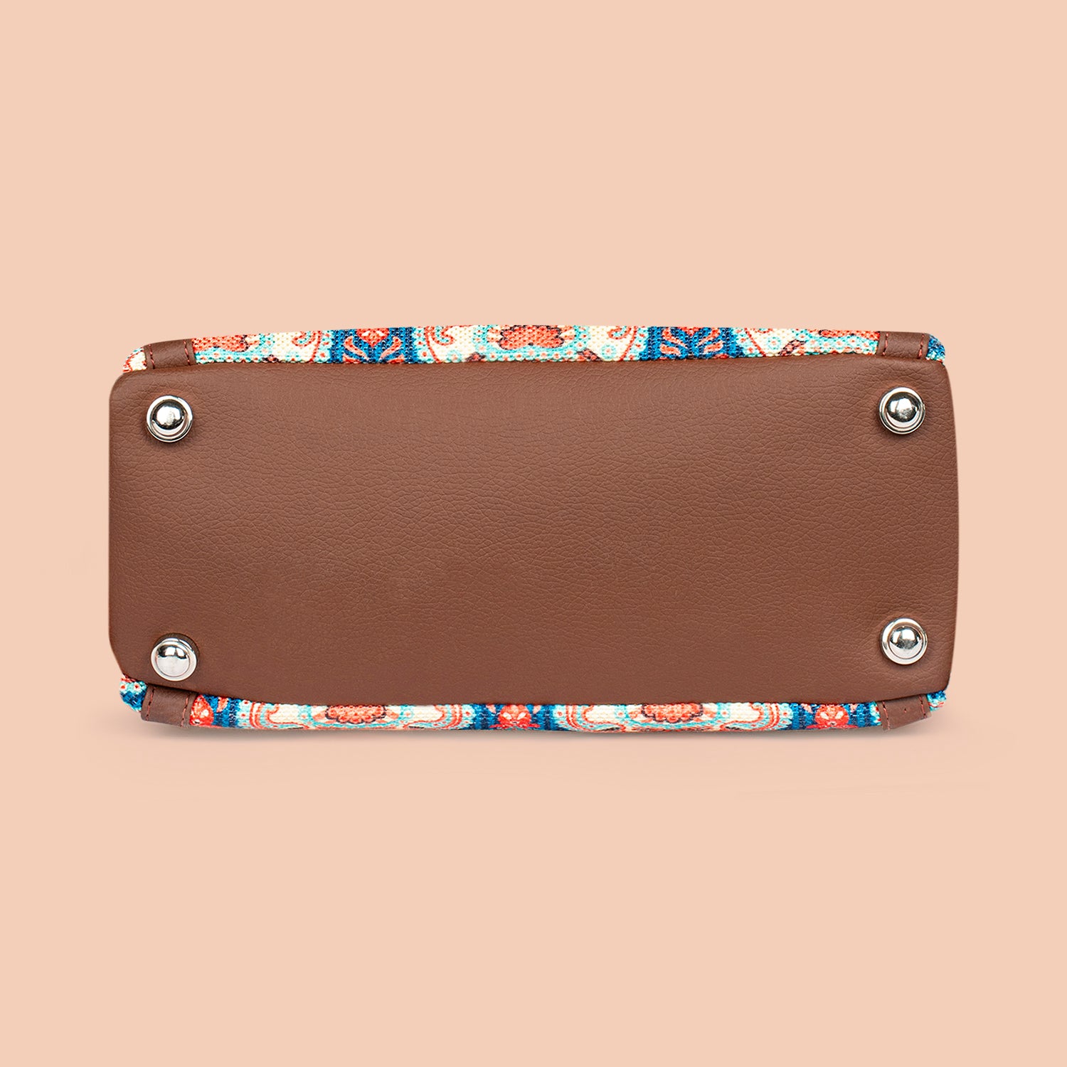 Materials: Vegan leather, handicraft fabric, nickel fittings