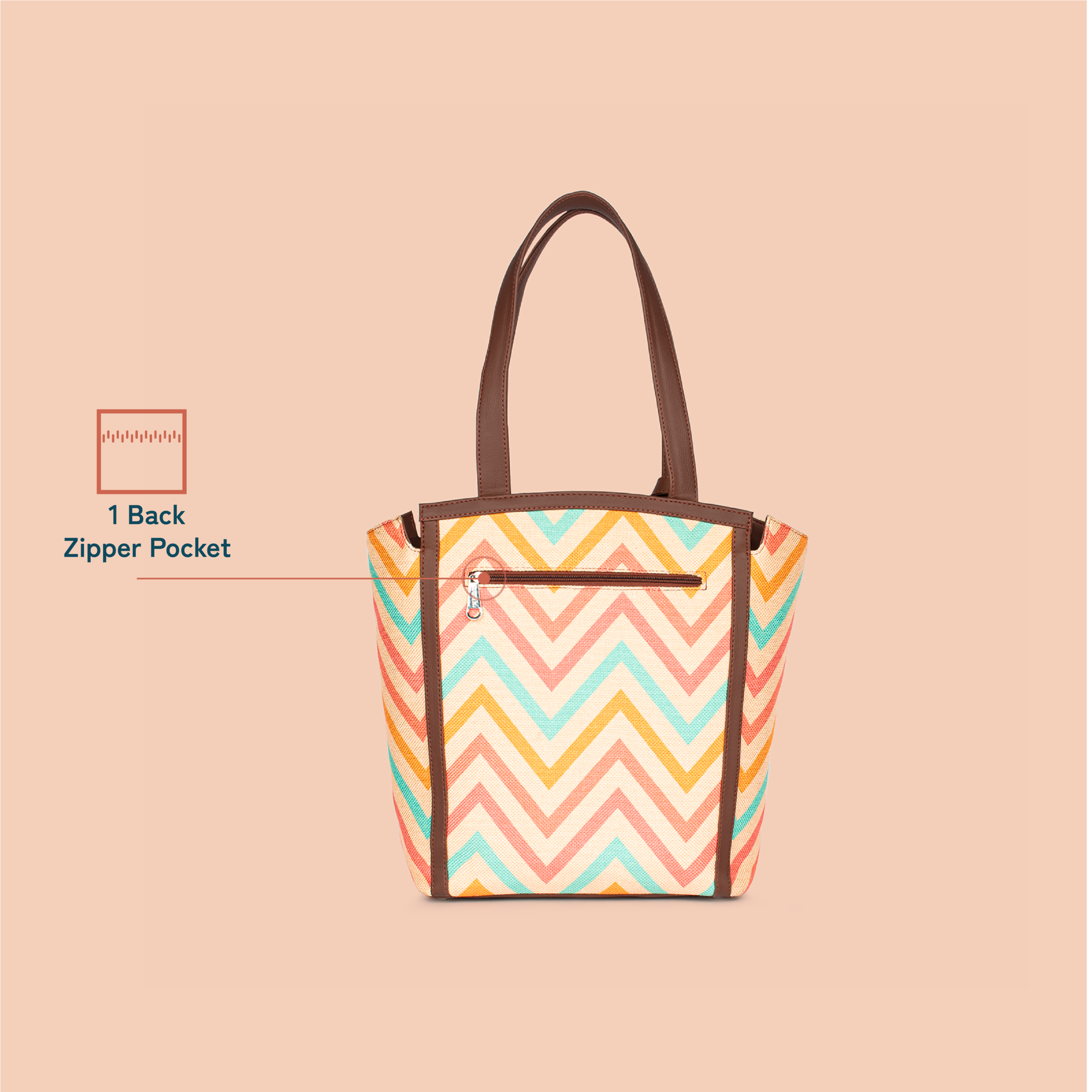 The Adira Tote Bag is designed for those who need a perfect balance of sophistication and practicality. It’s a 100% PETA-approved and proudly Indian tote bag that features contrasting vegan leather strips on fabric, a distinctive cutout detail, and the signature Z-dot charm.