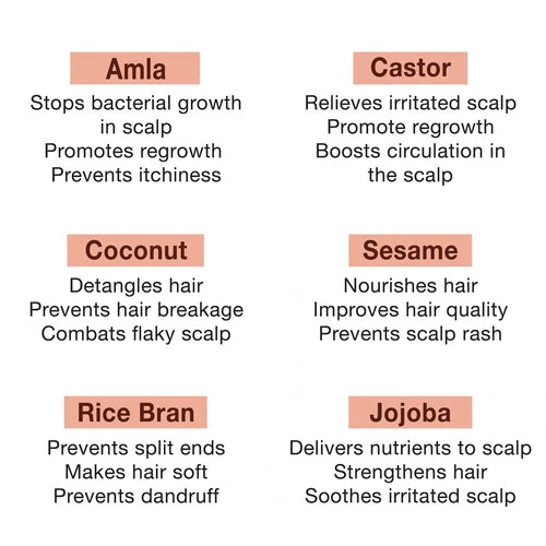 Full Ingredients: Coconut (Cocos Nucifera) Oil, Olive (Olea Europaea) Oil, Sesame (Sesamum Indicum Seed) Oil, Rice Bran (Oryza Sativa Bran Extract) Oil, Almond (Prunus Amygdalus Dulcis) Oil, Castor Ricinus Communis Seed) Oil, Rosemary (Rosmarinus Officinalis) Oil, Amla (Emblica Officinalis) Oil, Jojoba (Simmondsia Chinensis) Oil, Avocado (Persea Gratissima) Oil, Argan (Argania Spinosa Kernel) Oil, Lavender (Lavandula Angustifolia) Oil