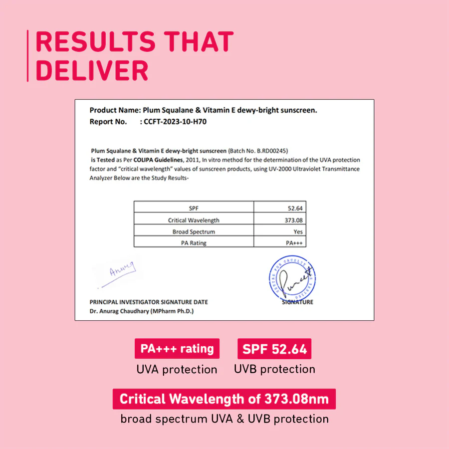 For those who want a sunscreen that not only protects but also deeply nourishes and brightens the skin, Plum Squalane & Vitamin E SPF 50 PA+++ Dewy-Bright Sunscreen is the perfect choice!