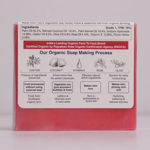 Full Ingredients: Palm Oil, Refined Coconut Oil, Palm Kernel Oil, Sodium Hydroxide, Castor Oil, Olive Oil, Rose Oil, Vitamin E & Rose Herbs