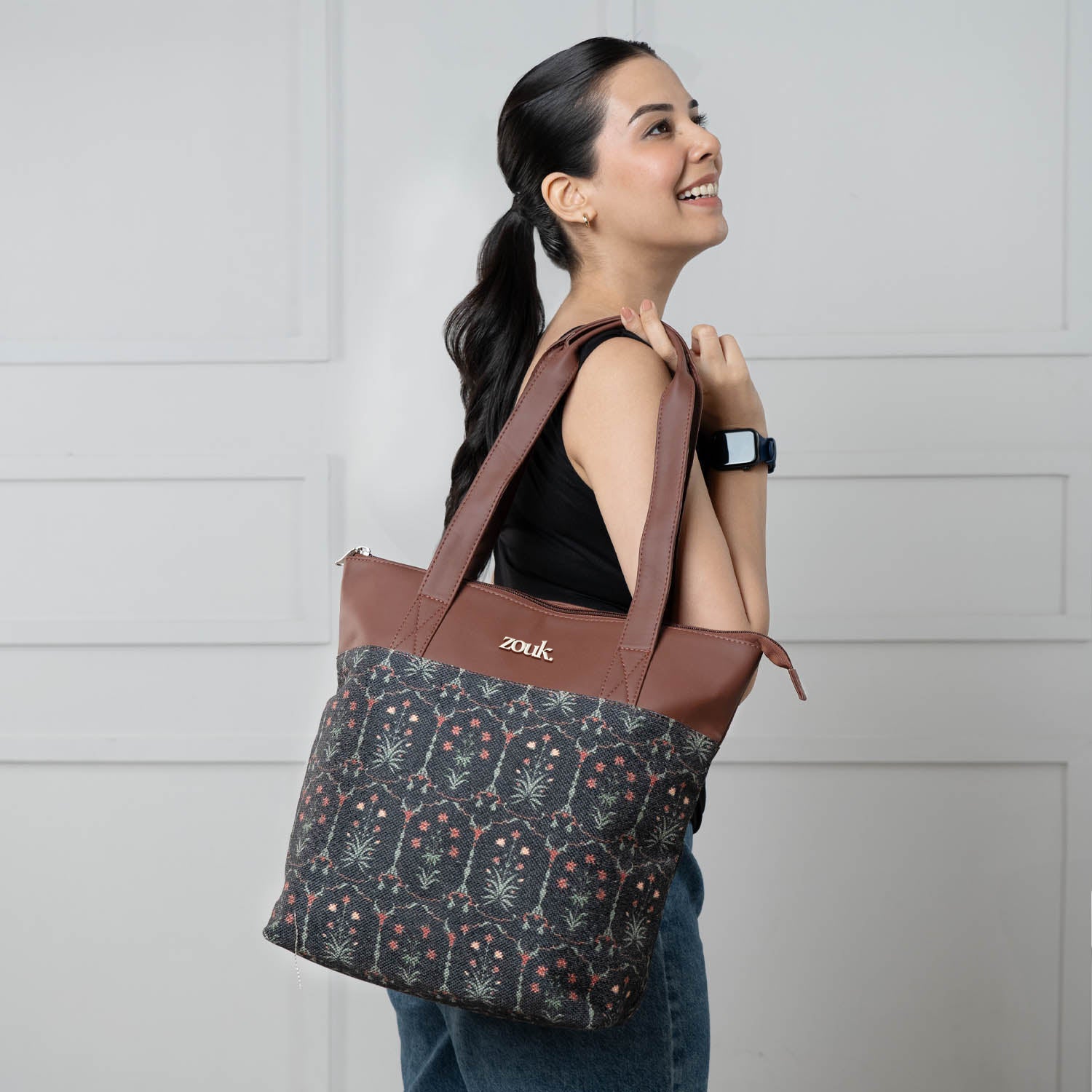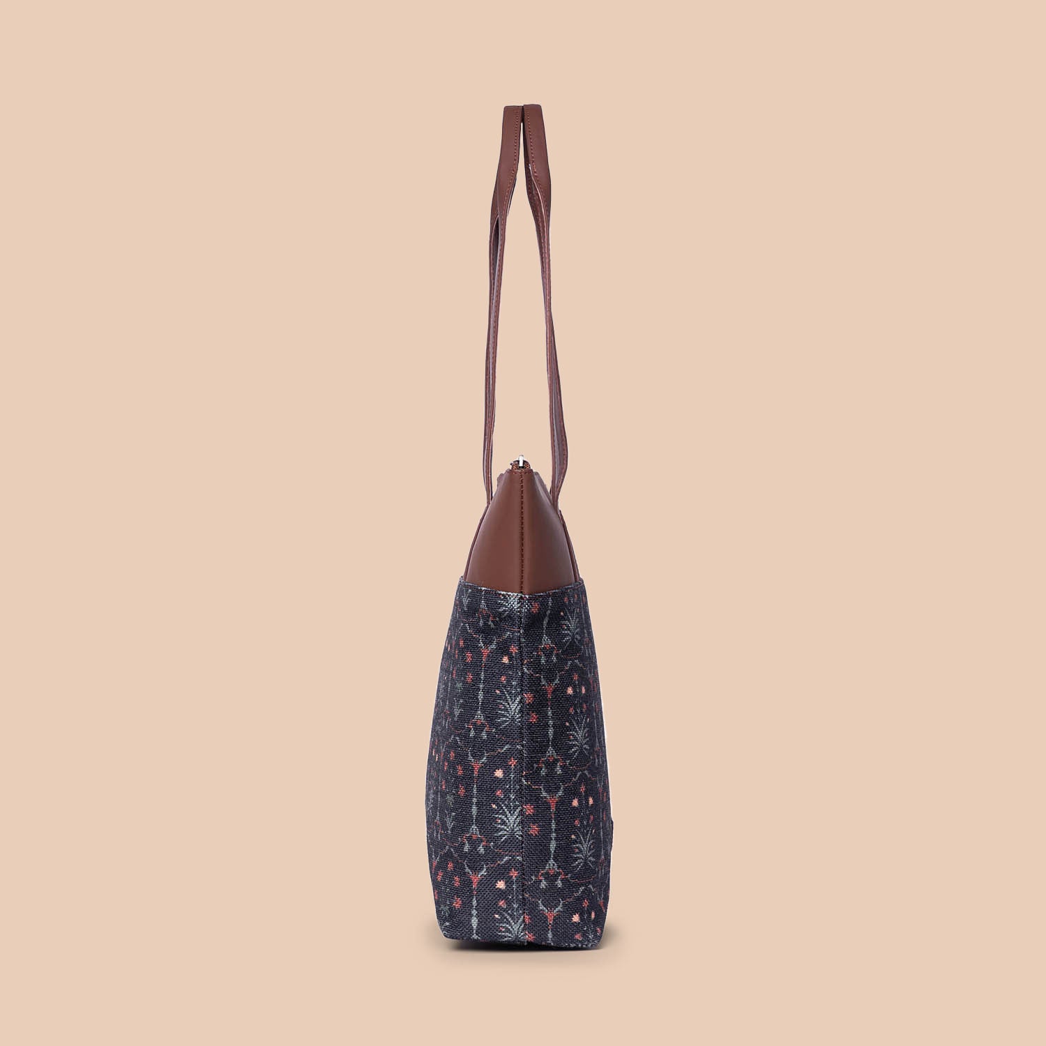 This is a Proudly Indian and 100% PeTA approved Everyday Tote Bag, A blend of thoughtful functionality and minimal design, this tote is made to secure and streamline your essentials in your everyday endeavors. It offers plenty of room to store your daily essentials. Crafted with printed jute khadi and vegan leather, this durable tote which will complement your outfits and will offer effortless carry.