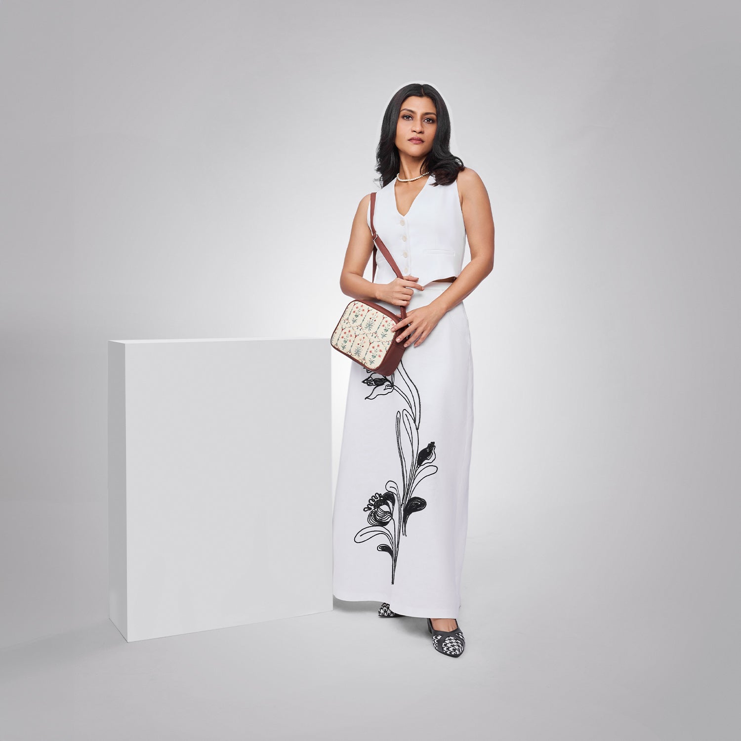 This is a Proudly Indian and 100% PeTA approved Vegan product with a Stylish Abstract Pattern. It has sturdy and durable accessories, with a zip closure and single shoulder strap handle (adjustable). The bag contains a single compartment. It has an inside zipper compartment. Also it has a back chain for quick access.