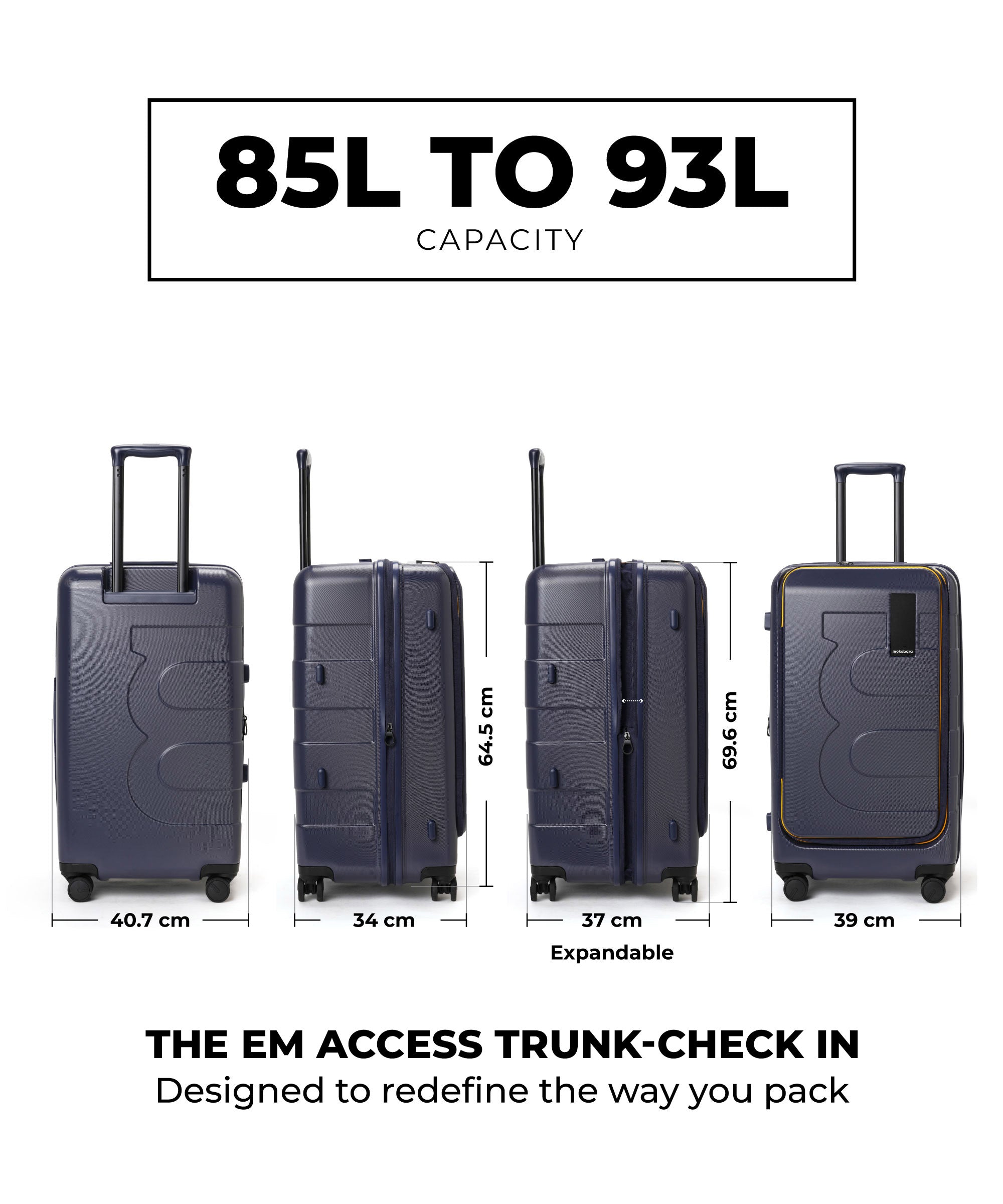 The Em Access Check-in expands to give you 7.5 litres of additional packing space.