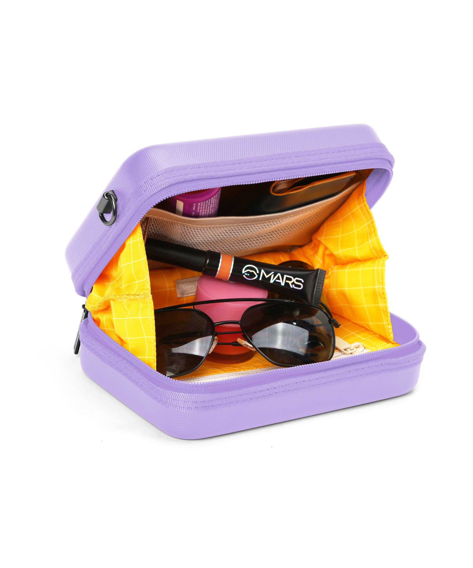 Thoughtfully designed hard shell sling to stow your phone, sunglasses, wallet or purse, and all your essentials. It’s big enough to take all your toiletries in one hit.