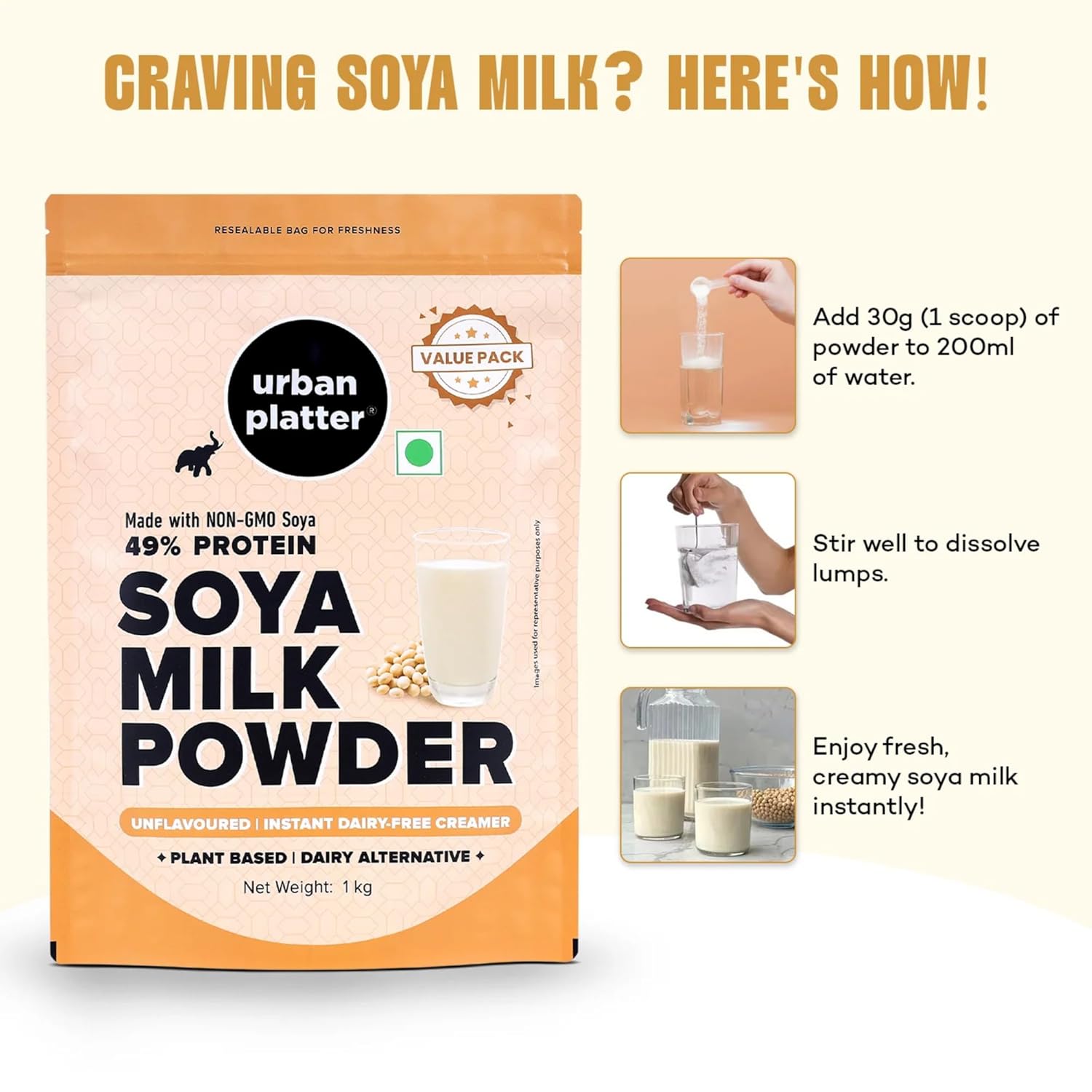 Urban Platter Dairy-Free High-Protein Vegan Milk Powder is a convenient and nutritious plant-based alternative to traditional dairy milk. Made from non-GMO soy, this instant milk powder delivers a smooth and creamy beverage when mixed with water while remaining completely lactose-free and vegan.