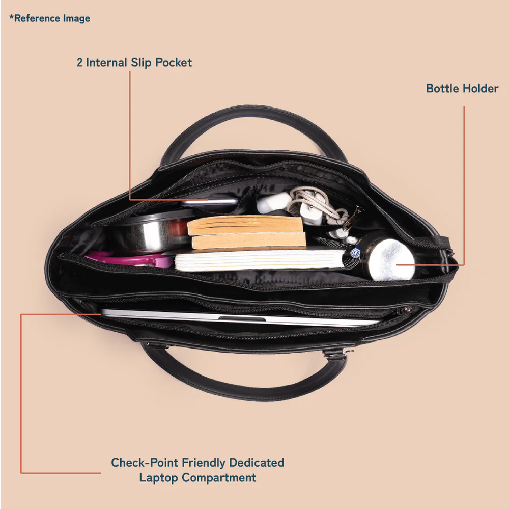 This bag features a spacious main compartment and a dedicated laptop compartment  which keeps your work essentials organized and within easy reach. In this bag you’ll find:
