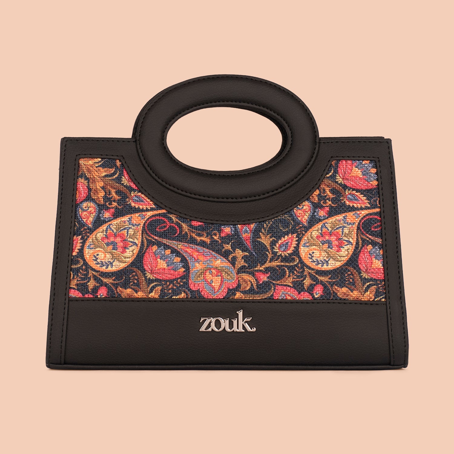 Materials: Vegan leather, handicraft fabric, nickel fittings