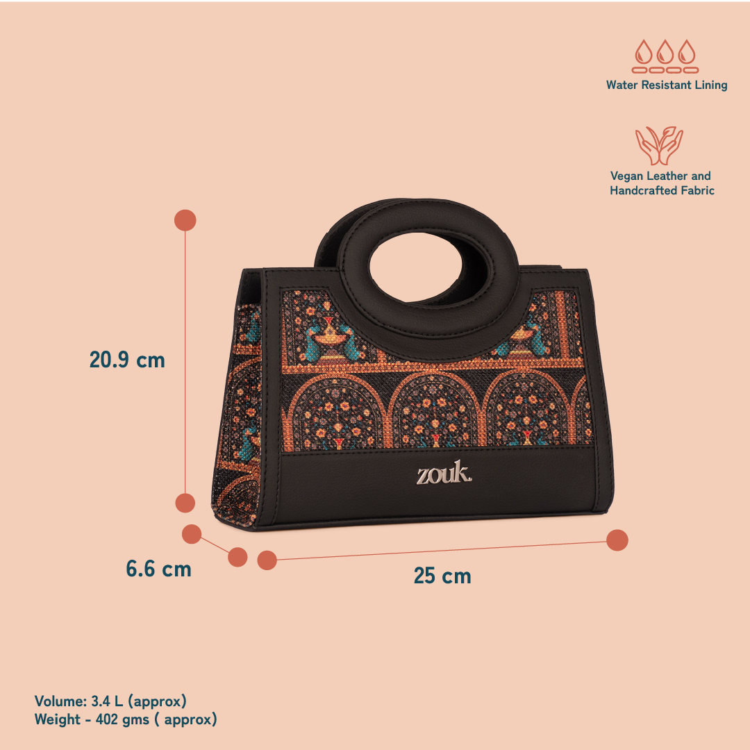 Materials: Vegan leather, handicraft fabric, nickel fittings