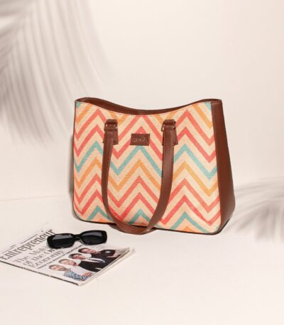 This is a Proudly Indian and 100% PeTA approved book tote,a versatile and functional accessory designed to effortlessly blend fashion and practicality. This unique handbag takes inspiration from the classic book tote design while adding modern elements that make it a true standout.