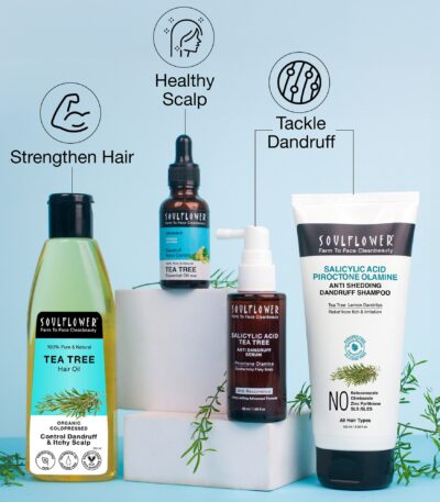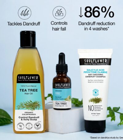 - The most essential steps in your Anti-dandruff routine start with Soulflower Tea Tree Scalp Oil, Tea Tree Essential Oil & Anti-Dandruff Shampoo.