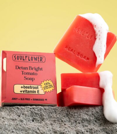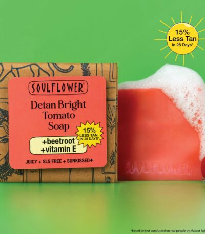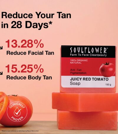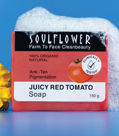 ₹199.00 – ₹1,299.00Price range: ₹199.00 through ₹1,299.00- Introducing our multitasking, all-season soap: Juicy Red Tomato Soap! Packed with fresh tomatoes, beetroots grown on our own farms. It’s a cold-processed soap technique with olive oil & castor oil for lasting moisture. The soap reduces redness, provides natural collagen & hydration. It further reduces tan lines, fades pigmentation, & reveal brighter, younger skin.