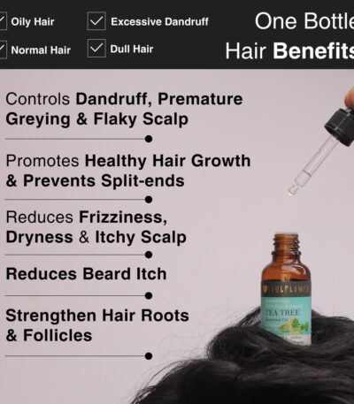 - Condition + Nourish: Soulflower Tea Tree Scalp Oil + Tea Tree Essential Oil to clear flakes & dandruff, remove excess scalp sebum, prevent dryness & give required nourishment to hair. This also helps prevent hair from further breakage while strengthening the hair shaft. USFDA Approved, ESG Certified,Vegan, Preservative-free with no additives.