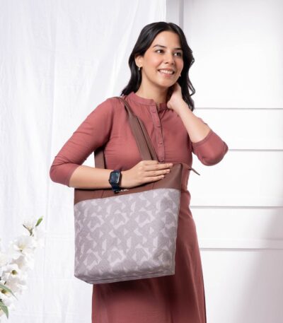 This is a Proudly Indian and 100% PeTA approved Everyday Tote Bag, A blend of thoughtful functionality and minimal design, this tote is made to secure and streamline your essentials in your everyday endeavors. It offers plenty of room to store your daily essentials. Crafted with printed jute khadi and vegan leather, this durable tote which will complement your outfits and will offer effortless carry.