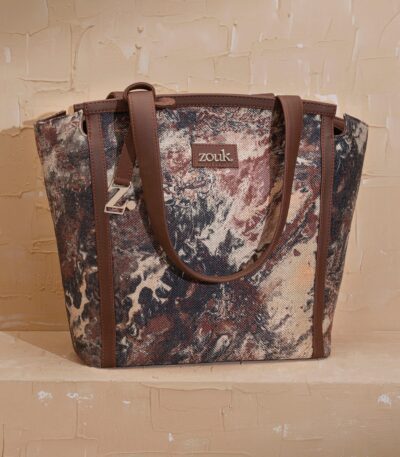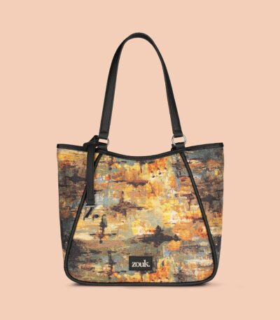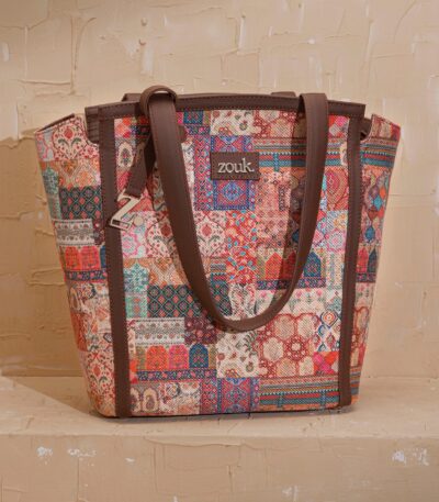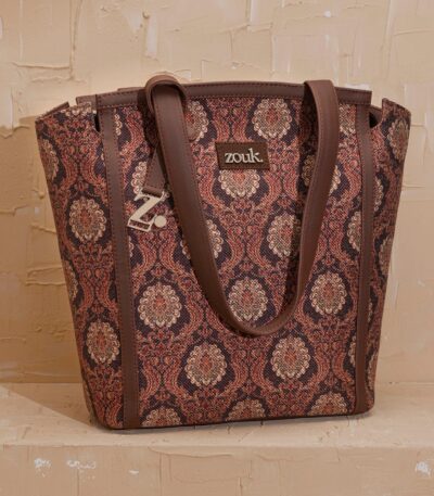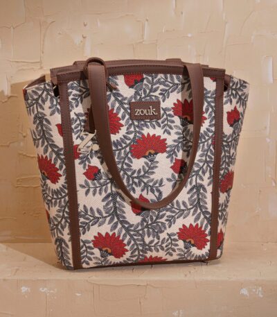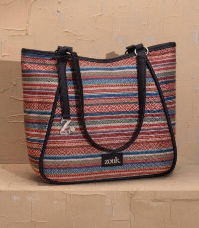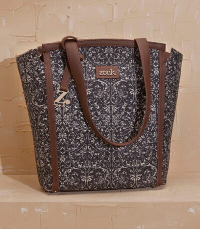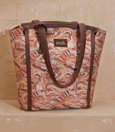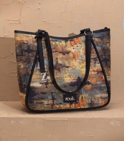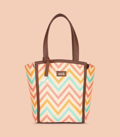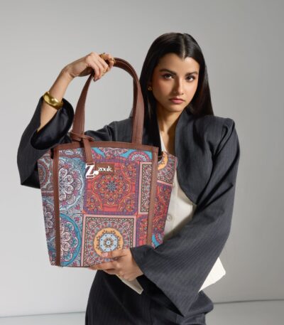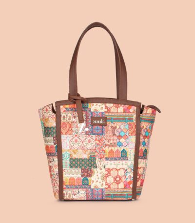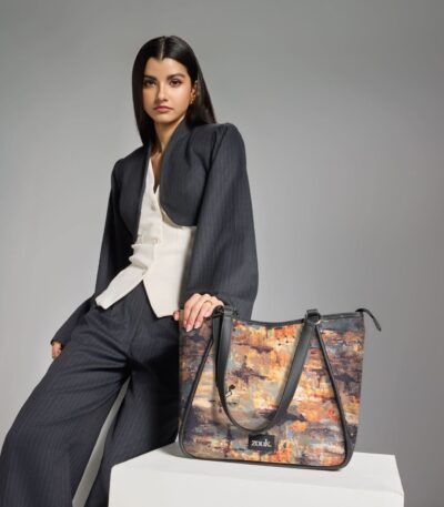 The Adira Tote Bag is designed for those who need a perfect balance of sophistication and practicality. It’s a 100% PETA-approved and proudly Indian tote bag that features contrasting vegan leather strips on fabric, a distinctive cutout detail, and the signature Z-dot charm.